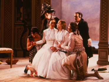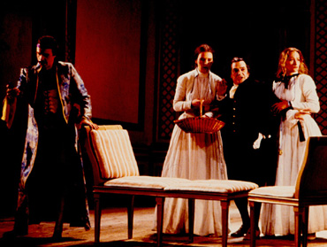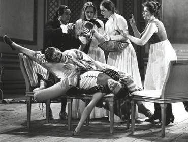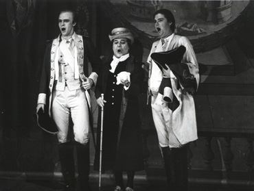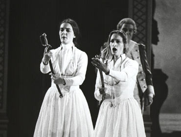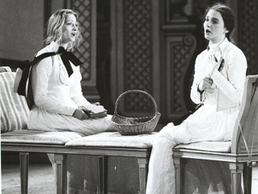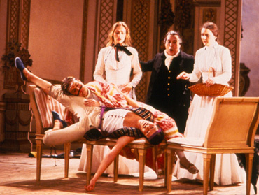 Der alte Philosoph Don Alfonso bringt seine beiden Freunde Ferrando und Guglielmo durch die Behauptung in Rage, ihre Geliebten Dorabella und Fiordiligi würden ihnen über kurz oder lang untreu werden – wie alle Frauen. So herausgefordert gehen die beiden jungen Offiziere eine Wette ein und starten den „Treuetest“ der besonderen Art. In dem kleinen Rokoko-Theater am Rande Stockholms leitete der Dirigent Arnold Östman seinen legendär gewordenen Mozart-Zyklus. Östman ist ein Vorkämpfer der heute weit verbreiteten „Originalklang“-Bewegung, die sich historischer Instrumente bedient und versucht, den Musizierstil des 17. und 18. Jahrhunderts wieder zu beleben. In den von ihm musikalisch verantworteten Aufführungen setzte Östman vor allem auf noch junge, überwiegend einheimische, Gesangstalente, so auch in dieser von Willy Decker 1984 inszenierten Produktion von Mozarts Cosi fan tutte. In dem kleinen Rokoko-Theater am Rande Stockholms leitete der Dirigent Arnold Östman seinen legendär gewordenen Mozart-Zyklus. Östman ist ein Vorkämpfer der heute weit verbreiteten „Originalklang“-Bewegung, die sich historischer Instrumente bedient und versucht, den Musizierstil des 17. und 18. Jahrhunderts wieder zu beleben. In den von ihm musikalisch verantworteten Aufführungen setzte Östman vor allem auf noch junge, überwiegend einheimische, Gesangstalente, so auch in dieser von Willy Decker 1984 inszenierten Produktion von Mozarts Cosi fan tutte