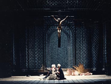 „Mit diesem Montezuma ist ein kleines Juwel der Vergessenheit entrissen worden“, so die Frankfurter Allgemeine Zeitung. Das Libretto stammt aus der Feder keines Geringeren als Friedrich des Großen, sein Hofkapellmeister Carl Heinrich Graun komponierte die Musik, sodass dieses selten aufgeführte Werk erstmalig 1755 im Berliner Königlichen Theater uraufgeführt wurde. Im Mittelpunkt der Oper steht Montezuma, der Kaiser der Azteken, der für seine Gastfreundschaft bitterlich bestraft wird. Die Milde und Aufopferungsbereitschaft Montezumas für sein Volk führt zu seinem Tod – einst in Gastfreundschaft empfangen, richten ihn die barbarisch einfallenden Konquistadoren gnadenlos hin. Daher gilt das Libretto auch als Rechtfertigungszeugnis für die harte Politik, der sich Friedrich II. seiner Zeit ausgesetzt sah. Bereits ein Jahr nach der Uraufführung zog er in den Siebenjährigen Krieg. Dass die Deutsche Oper Berlin diese Oper 1982 in der Inszenierung von Herbert Wernicke aufführte, war mit einem großen Risiko behaftet, denn es war weder ein besonderes Publikumsinteresse erkennbar, noch eine verlässliche Aufführungstradition. Da für die Aufführung kein spezielles Ensemble für Barockmusik zur Verfügung stand, spielte das Orchester der Deutschen Oper Berlin unter der musikalischen Leitung von Hans Hilsdorf auf modernen Instrumenten, was jedoch als Herausforderung gegenüber Grauns Komposition angesehen wurde.