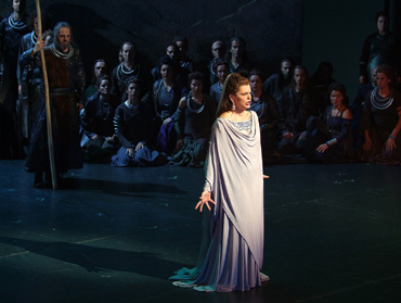 Richard Wagner, eigentlich kein Freund der italienischen Oper, beschrieb Norma als »reichstes aller Werke« und ihre Melodien »schöner als Träume«. Bellini selbst war sich bewusst, dass er mit Norma etwas Außergewöhnliches geschaffen hatte. Wesentlichen Anteil an dem andauernden Erfolg der Oper hatte zweifellos sein kongenialer Librettist Felice Romani. Er hatte erkannt, dass die tragende Dreiecksgeschichte der Vorlage von Alexandre Soumet für eine Vertonung wie geschaffen war: Norma zögert, den Galliern das Zeichen zum Aufstand gegen die Römer zu geben – sie liebt den Römer Pollione. Die Druidenpriesterin hat ihr Keuschheitsgelübde gebrochen. Sie ist die heimliche Geliebte des römischen Prokonsuls Pollione geworden und Mutter seiner beiden Kinder. Als Norma entdeckt, dass Pollione seine Liebe der jungen Adalgisa zugewandt hat, gibt sie das Signal zum Angriff. Am Ende besinnt sie sich, nimmt ihre Schuld an und rächt sich nicht an dem gefangenen Pollione. Anstelle von Adalgisa sühnt sie selbst den Bruch des Gelübdes auf dem Scheiterhaufen. Von Normas Liebe überwältigt, folgt ihr Pollione in den Tod. Wenn es die dramatische Situation verlangte, brach Bellini die typischen Belcanto-Konventionen, hob die Grenze zwischen Arie und Ensemble auf und definierte die Arienform neu: Normas berühmtes Gebet »Casta Diva« wurde zu einem der groß angelegten Frauenmonologe der Opernliteratur. Fein in die melodischen Bögen eingewoben, demonstrieren ihre Koloraturen keine eitle Sängervirtuosität, sondern berührende Emotionen. In ihrer Intensität vermittelt die Norma-Partitur dramatische Inhalte mit den ausgefeiltesten, gesangstechnischen Mitteln des Belcanto. Die Titelpartie in dem vorliegenden Mitschnitt aus dem Gran Teatre del Liceu in Barcelona verkörpert die italienische Sopranistin Fiorenza Cedolins.