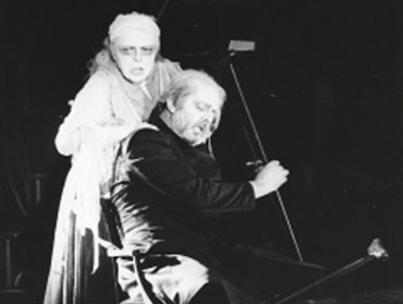 In September 1984, as part of the Berlin Festival Week, the Deutsche Oper Berlin staged the world premiere of German composer Aribert Reimann’s opera “Die Gespenstersonate”. Based on the drama by the Swedish writer August Strindberg, the chamber opera tells the story of a student, who muses about the inhabitants of a fancy-looking house. His crucial meeting with the Old Man pulls him into a world of intrigues, sickness, depression and murder. It plays in and around the presumably haunted house, which seems to drown its inhabitants in its sinister atmosphere. Better known for his operas “Lear” or “Medea”, Reimann established himself firmly as a stage composer from 1965 onwards. “Die Gespenstersonate”, being a modern chamber opera, was performed not on the great stage of the Deutsche Oper Berlin, but at the smaller Hebbel-Theater. Heinz Lukas-Kindermann’s stage direction sets the spectator under its gloomy spell, the exquisite cast performing the demanding score stars Hans Günter Nöcker as the “Old Man” and David Knutson as the Student, as well as well-loved Martha Mödl as the “Mummy”.