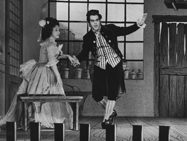 Staged by Gustav Rudolf Sellner, conducted by Lorin Maazel, with costumes by Filippo Sanjust and performed by the six soloists with consummate vocal elegance, Cimarosa’s “Die heimliche Ehe” offers unalloyed pleasure, triggering a kind of ecstasy with its combination of delicacy and opulence and its refined humour. It brings out Cimarosa’s musical mastery – but also the visual impact of the opera.