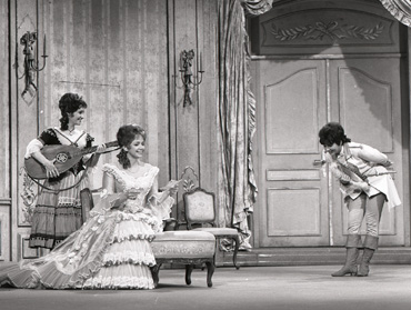 This German version of Wolfgang Amadeus Mozart’s Marriage of Figaro, with set and costumes by Ita Maximowna, dates from the year 1967. The Hamburg State Opera Choir and the Philharmonic State Orchestra of Hamburg are conducted by Hans Schmidt-Isserstedt, who worked as the opera company’s first conductor between 1935 and 1942 as well as from 1945 to 1971 and was chief conductor of the North German Radio Orchestra, which he had personally been responsible for reorganizing in the post-war years. It may come as a surprise to learn that the singers, all of whom are now international stars, were drawn exclusively from the Hamburg State Opera ensemble - further proof of Rolf Liebermann’s skill in identifying up-and-coming musicians! The fact that almost all the singers were of roughly the right age for the roles they were playing helped enhance the film’s credibility and realism when it came to close-up shots.