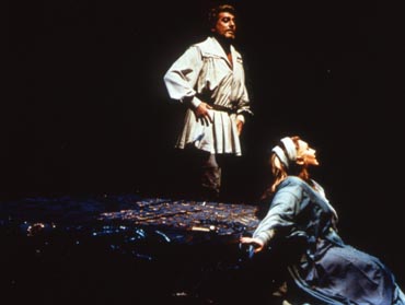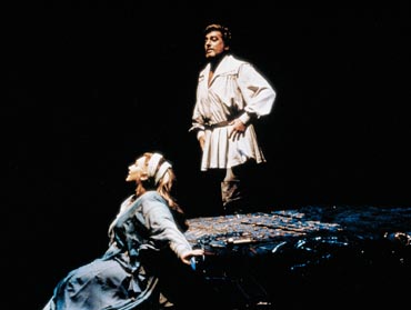 Wagner set the action of his “romantic opera” Lohengrin in the “first half of the 10th century” – an instruction which director Wolfgang Weber and his stage designers Rudolf and Reinhard Heinrich clearly took very seriously when they produced it at the Vienna State Opera in 1990. We do indeed experience the early, gloomy Middle Ages: muted colours, dark clouds, barren landscapes and simple shapes dominate the scene. Weber’s simplicity succeeds in evoking clear symbolism; his staging does not impress by means of the spectacular, but underlines the dramatic sense embodied in the music, allowing the outstanding singers full scope to express themselves in this remarkable production under Claudio Abbado. The main roles are taken by Cheryl Studer as Elsa, and Placido Domingo as Lohengrin – which he first performed as his debut role at the Hamburg State Opera in 1968, at the age of 27.